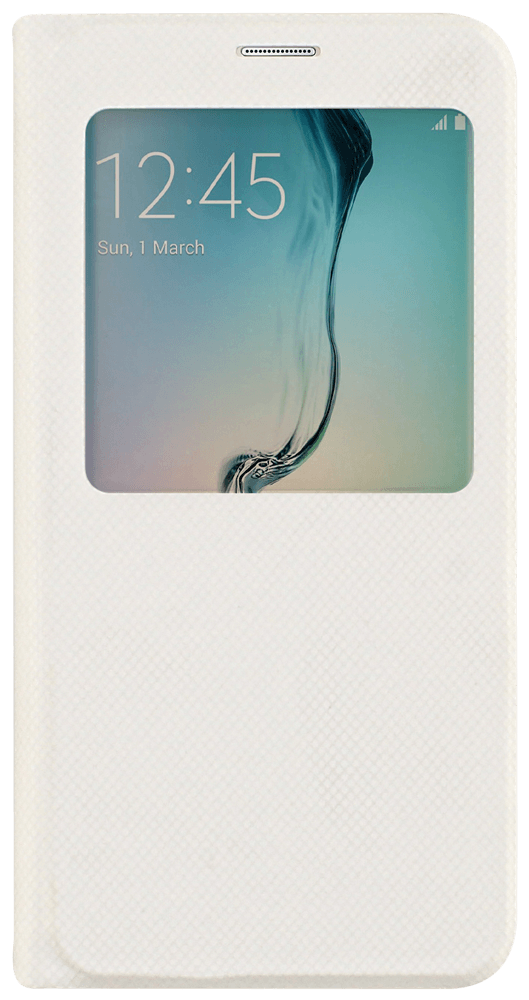 Samsung Galaxy S6 EDGE plus oldalra nyíló flipes bőrtok rombusz mintás view cover fehér leírása