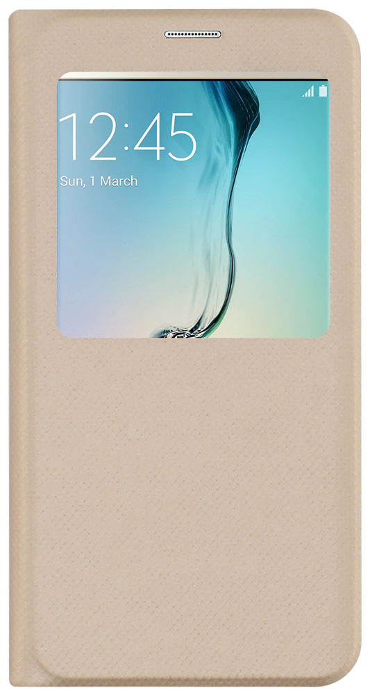 Samsung Galaxy S6 EDGE plus oldalra nyíló flipes műanyag tok View Window rombusz mintás bézs leírása